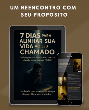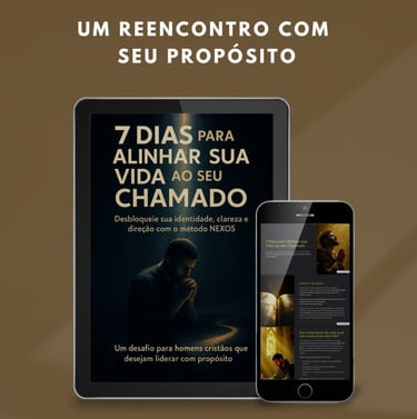 Em 7 dias, alinhe sua vida ao seu chamado com o método NEXOS — uma estrutura criada para restaurar sua vida espiritual e revelar seu propósito, com base em valores cristãos e princípios bíblicos milenares. Clareza, direção e fé para homens de verdade.